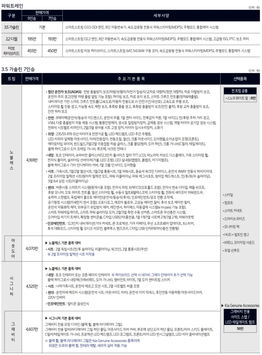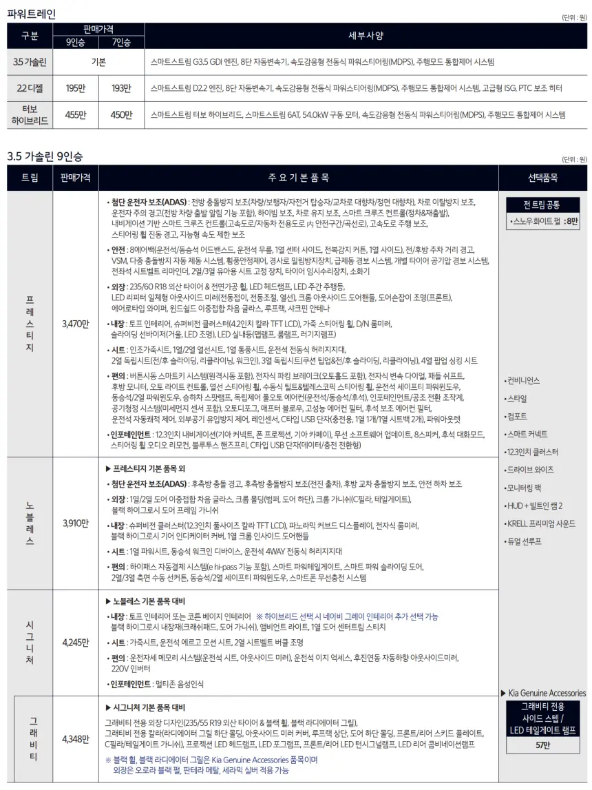 2024 기아 쏘렌토 하이브리드 가격표 | 출고 기간 | 성능 및 제원 정보 가이드