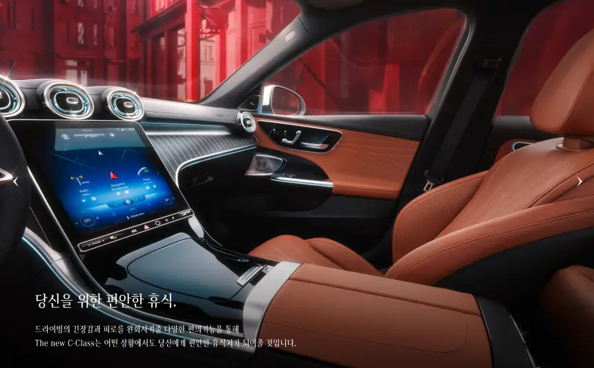 2024 C클래스의 최고 출력은 258마력, 최대 토크 40.8kg.m의 강력한 성능과 정지 상태에서 100km/h까지 단 6초 만에 도달하는 가속력까지 프리미엄 세단 자동차 이상의 놀라운 성능을 보여줍니다.