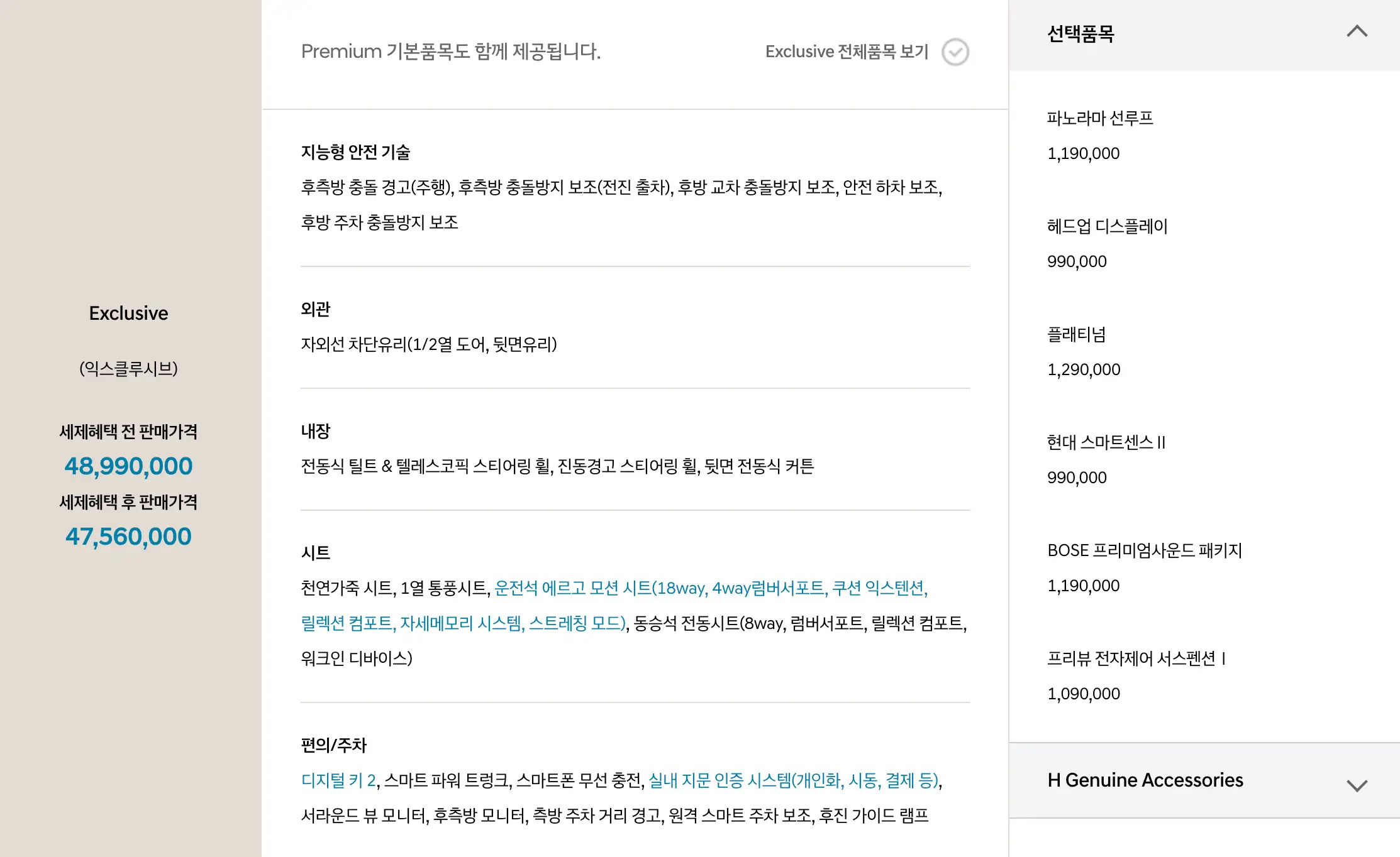 2) 익스클루시브 : 4,756만원 ~