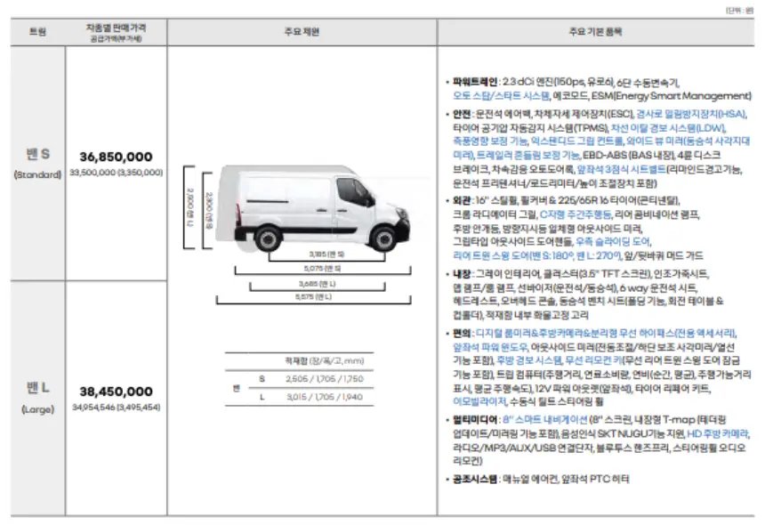 2024 르노 마스터는 상용차 시장에서 높은 신뢰도를 자랑하는 모델입니다. 특히, 사업용 차량으로 인기가 많은데요, 현재는 르노 홈페이지에서는 구매가 어렵지만 르노 전시장을 통해서 문의를 하시면 가능한 것으로 알려져 있습니다.
