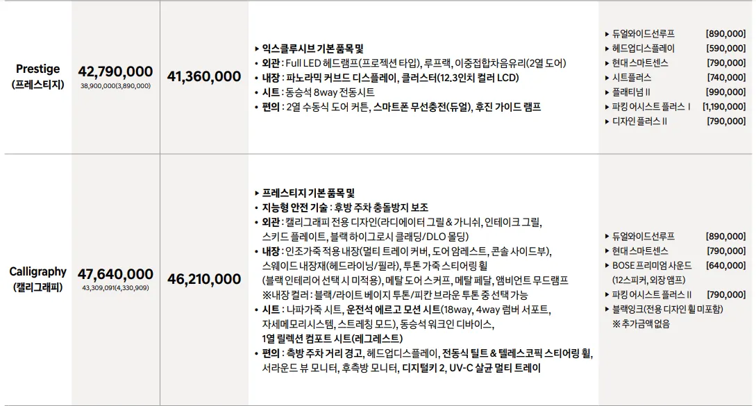 추천 트림으로는 익스클루시브 트림을 선택하셔도 괜찮습니다.