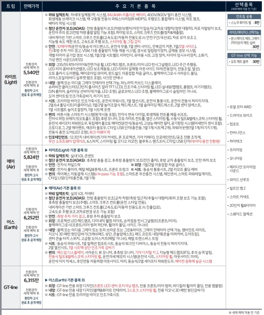 아직 출시 전이라서 세제 혜택 전의 가격으로 높은 가격대로 생각이 들겠지만 나중에 세제 혜택과 지자체별 전기차 보조금을 받게 된다면 기본 가격보다 낮은 가격대로 구매할 수 있습니다. 이전 모델보다 성능과 디자인 면에서 업그레이드 되었지만 가격은 동결했다고 발표한 걸 보면 합리적인 가격의 전기차를 구매할 수 있습니다.